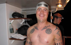 Írországban él, vámmentes boltban csoportvezető és eladó, ha meg nem ezt csinálja, akkor 30-40 kilométereket úszkál cápák és ráják között, Manhattanben, a Csatornán (La Manche)…