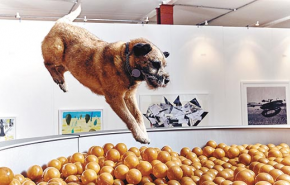 A tárlaton bár kiakasztottak képeket ebszemmagasságban is, a lényeg mégiscsak az volt, hogy a kutyusok jól érezzék magukat az előre oda készített játékok és labdák között.