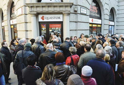 Tömeg egy Quaestor-fiók előtt - Fotó: Kovács Tamás, MTI