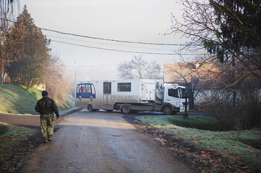 Sok olyan településen is megállnak, ahol szinte már semmilyen szolgáltatás nincs, van, ahol még a kocsma is bezárt, a helyi Volán is csak kétszer fordul egy nap. Amikor hidegebbre fordul az idő, nem mindig tudnak elindulni: az óriási jármű a rettenetes állapotban lévő országutakon szinte kormányozhatatlanná válik, ha a mezők felett kialakuló pára az útra fagy. Nem egyszerű leparkolni sem a girbegurba aszfalton. „Igyekszünk olyan helyeket kinézni, amelyek a települések központjában vannak, hogy az olvasók könnyen megtalálják. Ez nem mindig egyszerű, mert a könyvtárbusznak áramellátás kell. Ráadásul parabolán keresztül van internetünk, de a műholddal csak bizonyos szögekből tud az antenna kommunikálni” – ecseteli László. Ma szerencsénk volt, a jeges útfelülettel csak az egyik emelkedőn kellett megküzdeni.