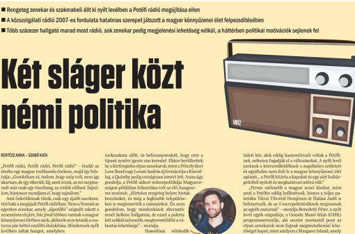 - A közszolgálati rádió 2007-es fordulata hatalmas szerepet játszott a magyar könnyűzenei élet felpezsdítésében.