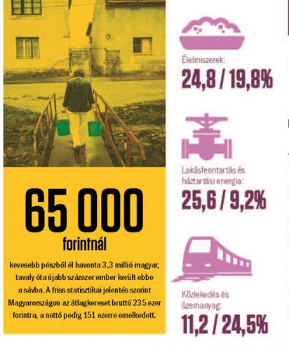 Az utóbbi öt évben átlagosan 17 százalékkal drágult az élet. - Egyre nő a szegénység Magyarországon – lassan minden hónapra jut valamilyen riasztó statisztikai adat, amely azt bizonyítja, hogy a társadalom mind szélesebb rétegei élnek a nyomor küszöbén, vagy éppen az alatt. Mindez éles ellentétben áll a kormány által már-már erőszakosan sulykolt „Magyarország jobban teljesít” szlogennel. A számok és a szlogenek közt feszülő ellentmondás mögött azonban talán jóval több, előre megfontolt szándék rejlik, mint azt sejteni mernénk. - Összeállításunk a magyarországi szegénységről.