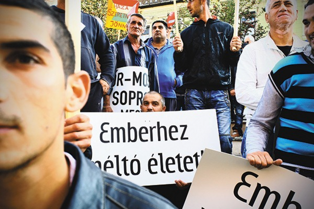 Romák tiltakoznak a Jobbik felvonulása ellen Miskolcon tavaly októberben (Lakos Gábor felvétele)