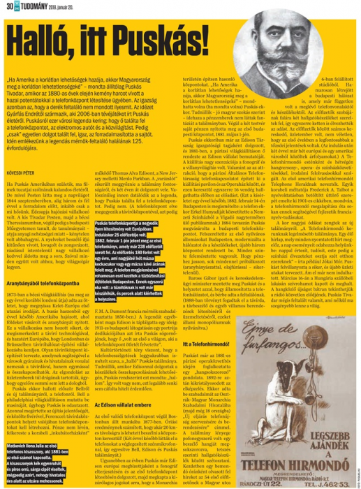Tudniillik, amikor Edisonnal dolgoztak a készülékek összekapcsolásának lehetőségén, Puskás rendszerint ezt mondta: „hallom”. Így volt vagy nem, ezt legalább senki sem cáfolta hitelt érdemlően.