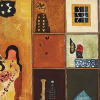 A papagájtoll-blézeres nő mellett balra egy indián fejdíszes, mongol csizmás, huszárruhás modell, jobbra egy színes szőrmecsuklyás eszkimó foglal helyet.