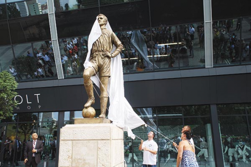 De ne szaladjunk előre: a megnyitó előtt leleplezték az egyetlen magyar aranycipős, Albert Flórián bronzszobrát. A császár a klubház felőli bejáratnál áll. „Nem hasonlít az arca, a nagypapa más volt – mondta Patrik, a legidősebb unoka –, de egész jól néz ki.” Fenyvesi Máté Fradi-legenda, Albert egykori csapattársa az avatón eloszlatott egy közkeletű tévedést. Flóri nem azért állt mindig csípőre tett kézzel – amint azt Kligl Sándor szobra is példázza –, mert nyegle vagy nagyképű lett volna, hanem mert „így jobban kapott levegőt, amire nagy szüksége is volt, hogy gyorsabban tudjon gondolkodni és futni”. Hát így.
