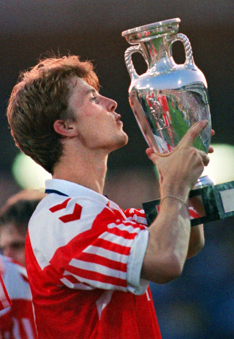 Hasonló „sláger” volt az 1992-es tornán, hogy a balkáni háború, illetve az ENSZ-embargó miatt diszkvalifikált Jugoszlávia helyett beugró Dánia labdarúgói megszakították nyaralásukat, és megnyerték az Eb-t. Igaz, a vetélkedő helyszínén, Svédországban is üdültek: egy fürdőhely, Stenungsundbaden jachtklubjában táboroztak le, s úgy éltek ott, mintha változatlanul a Bahamákon lettek volna… Napoztak, söröztek, cigarettáztak, és közben maguk mögé szorították csoportjukban az egyaránt nyeretlen Angliát és Franciaországot. Aztán a legjobb négy között – a tizenegyespárbajban – elbúcsúztatták a címvédő hollandokat is, majd a göteborgi döntőben előbb John Jensen rúgott nagy gólt Illgnernek, majd Kim Vilfort gondoskodott róla, hogy végképp elszálljanak az elsőséghez fűzött német remények (2-0). Németország sok mindennel ünnepelte az újraegyesítést, csak futball Európa-bajnoki aranyéremmel nem…