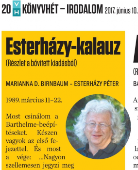 (Marianna D. Birnbaum-Esterházy Péter: Esterházy-kalauz (bővített kiadás), Magvető, 2017.)