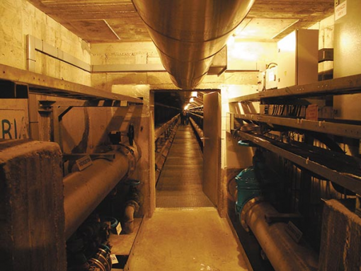 pontosan ott fut, ahová a nagymarosi duzzasztómű nyomvonalát tervezték, az 1696. folyamkilométernél nyíló lejáratot kék fedőlapok jelzik. A vezetékek kapcsolótáblái, az elosztók, csövek, optikai kábelek és betongyűrűk között vezető túra során még két kiállítás is megtekinthető: